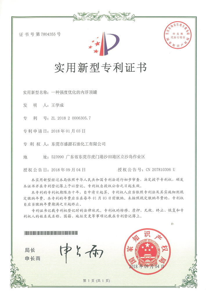 實用新型耐腐蝕儲罐專利證書Click for larger image