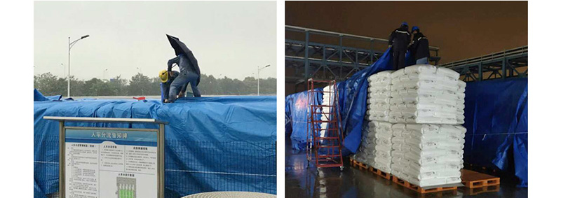 針對近期天氣變幻莫測、時晴時雨的情況,青年戰疫突擊隊采用“打游擊”的方式進行移庫工作,雨來我退,雨停我移。雨大我躲,雨小我出。2月13日晚,天空突然飄起了雨絲,部分剛轉移出庫的產品還未來得及蓋上“雨衣”,青年戰疫突擊隊成員冒雨迅速給轉移出庫的產品蓋上防水帆布。隨著下游企業陸續復工復產,這場“游擊戰”的勝利指日可待。
